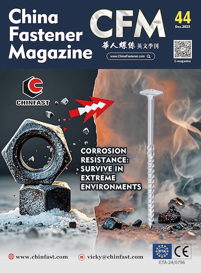 创办于2007年,全英文杂志。季刊(3月、6月、9月、12月)每期发行15000册,电子书及在线下载达3万次/年覆盖全180多个国家和地区。紧固件行业的顶尖杂志,提供行业最新资讯,帮助紧企拓展全球市场!