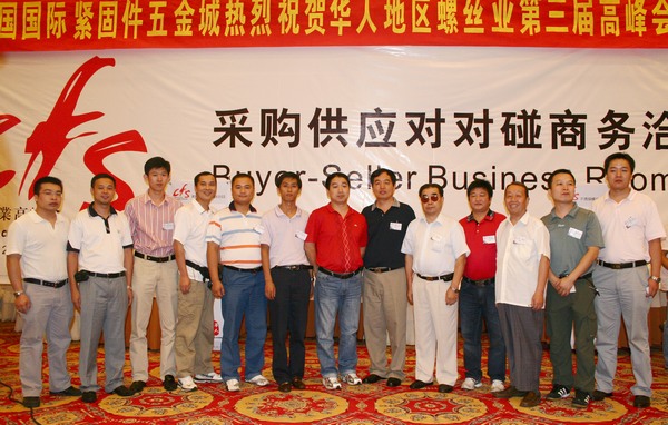 “采购—供应对对碰”活动在下午4点举行。在宴会厅的后半部分,组委会专门辟出一个区域,作为交流区。乍一看,有点洽谈会的味道:分为6大区域,分别是原材料供应区;设备供应区;不锈钢螺丝供应区;高强度、高附加值螺丝供应区;模具、表面处理及耗品区;嘉宾区,各个分区都有一些企业代表坐镇。在主持人诙谐幽默的介绍下,现场的嘉宾渐渐多了起来,或在交换名片,或在热切交谈,或在详细询问……更有甚者,可能已经成为合作伙伴。