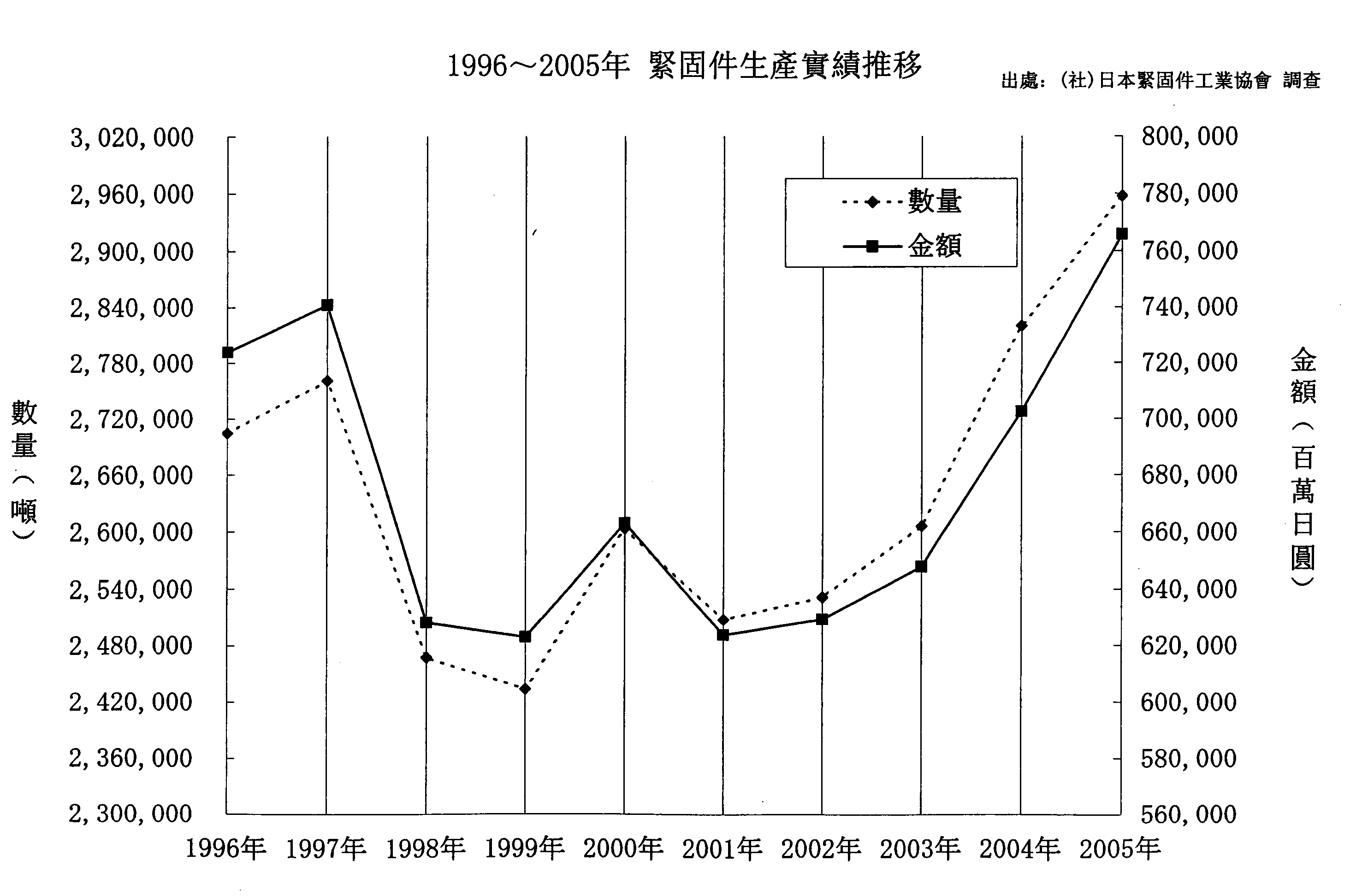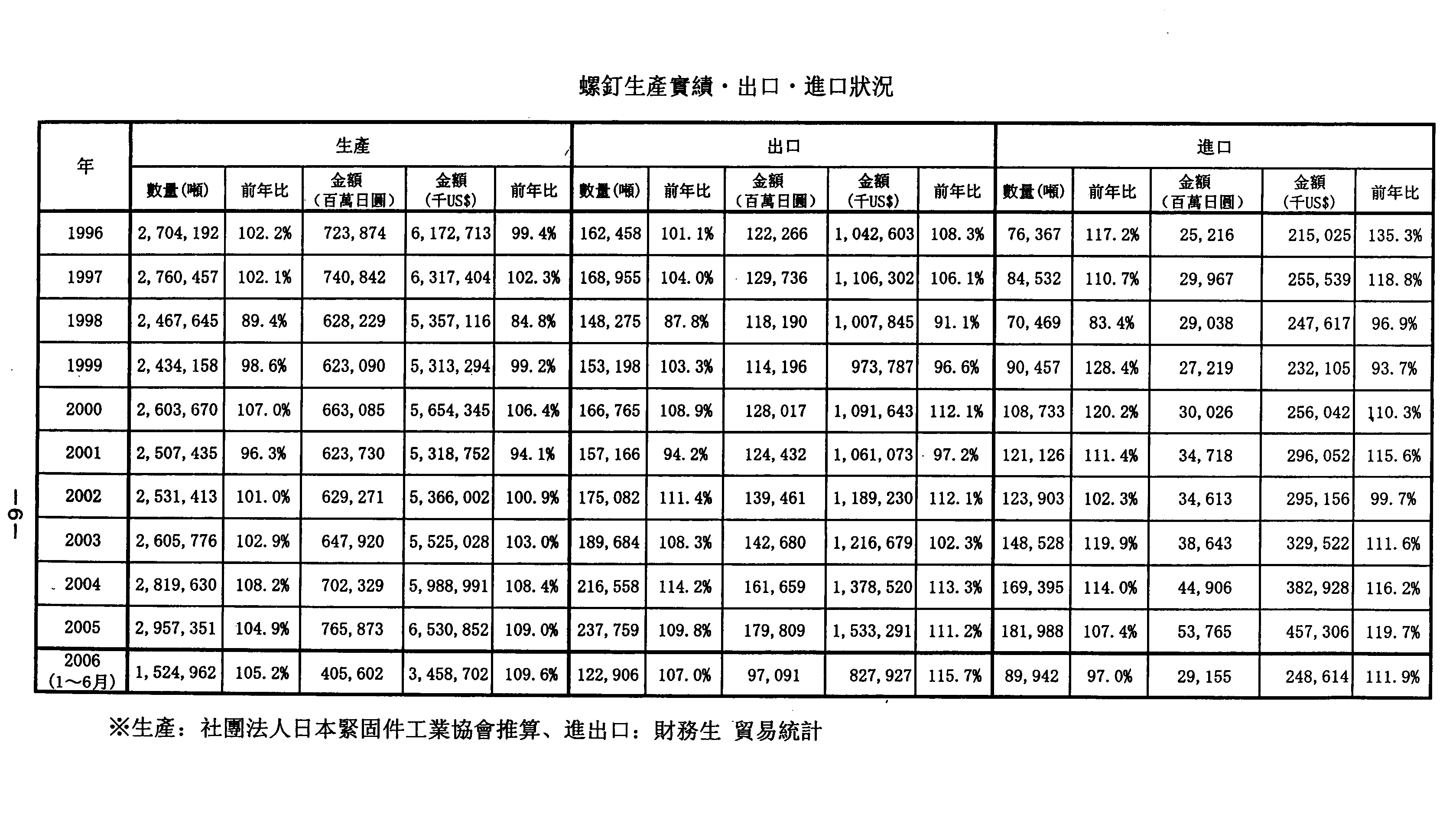 1995-2005日本紧固件生产实绩