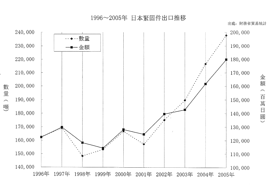 1996-2005日本紧固件出口推移