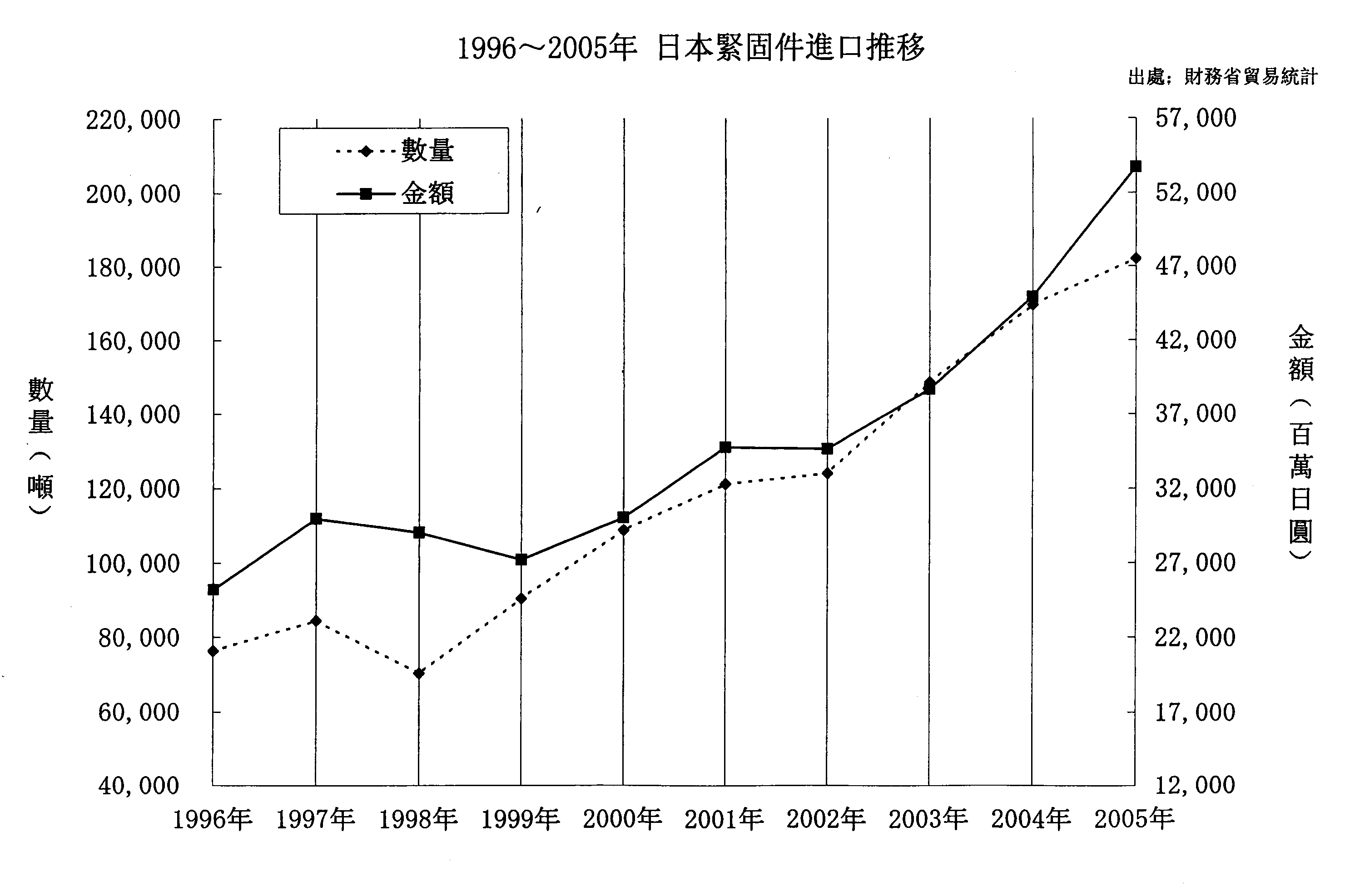 1996-2005日本紧固件进口推移