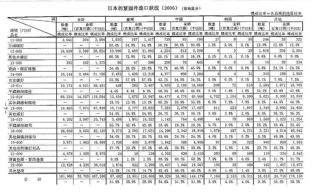 日本紧固件进口状况