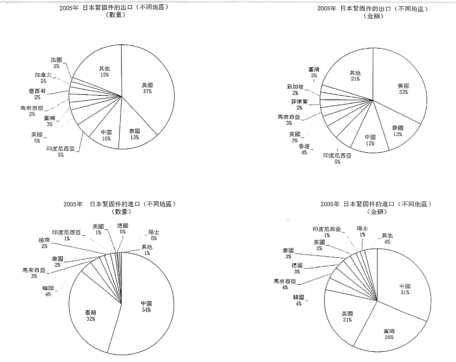 日本螺钉生产实绩出口进口状况 日本紧固件进口状况 日本进出口图 1995-2005日本紧固件生产实绩 1996-2005日本紧固件出口推移 1996-2005日本紧固件进口推移