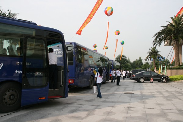 天气晴朗,风和日丽,正是一个郊游的好日子。华人螺丝网参访团在清晨8点整,乘坐大巴前往企业参访。路上,三辆大巴鱼贯而行,浩浩荡荡,大巴上还贴着标语“华人螺丝网赴东莞春雨、东莞鹏驰参访团”,好一派热闹的景象!