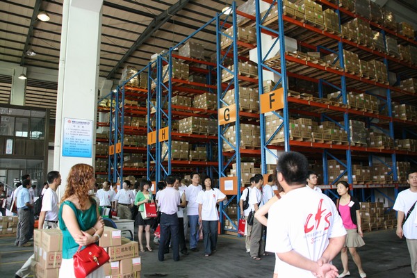 随后参访团进入车间参观。鹏驰占地面积50000多平方米,厂房位置也规划得很合理,按照生产流程分布。在生产车间,多台多功位冷煅成型机在快速地运转着,一根根线材经过机器之后就变成一颗颗成型的螺丝;在储藏车间,可以见到一列列整齐的货架,按类摆放着各种螺丝,工作人员在每个货架上仔细清点着数量、快速准确地取货。在参访全过程,鹏驰的员工都细心地为各位嘉宾解说、解答疑问,并礼貌地维护现场秩序。许多嘉宾均表示,鹏驰的员工不仅热情,而且很有礼貌,希望与鹏驰能够达成愉快的合作。