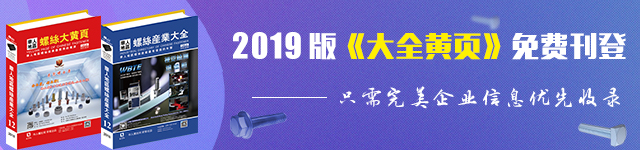 为回馈客户多年来的支持,华人螺丝网将免费为您刊登企业信息,扩大宣传。您只要进入办公室>>完善企业信息,您的企业信息将免费收录至2019年螺丝大黄页中,让上万紧固件高端用户找到您!